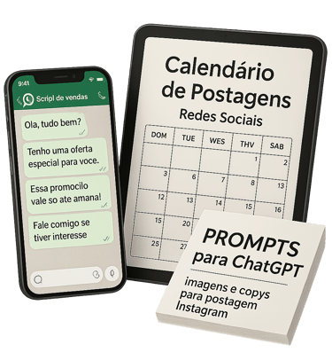 Aqui você irá baixar um calendário de postagem de redes sociais, scripts de Whatsapp de alta conversão para serem enviados para pacientes, Prompts prontos para contrução da bio do Instagram, logos, imagens e textos prontos para postar no instagram.