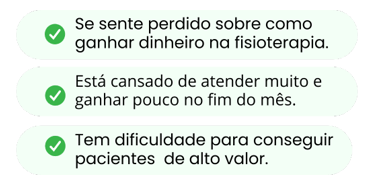 Aqui você vai encontrar um passo a passo de ações validadas para atrair pacientes e vender programas de tratamento de alto valor e ganhar mais de 10 mil reais de lucro todos o meses na fisioterapia.